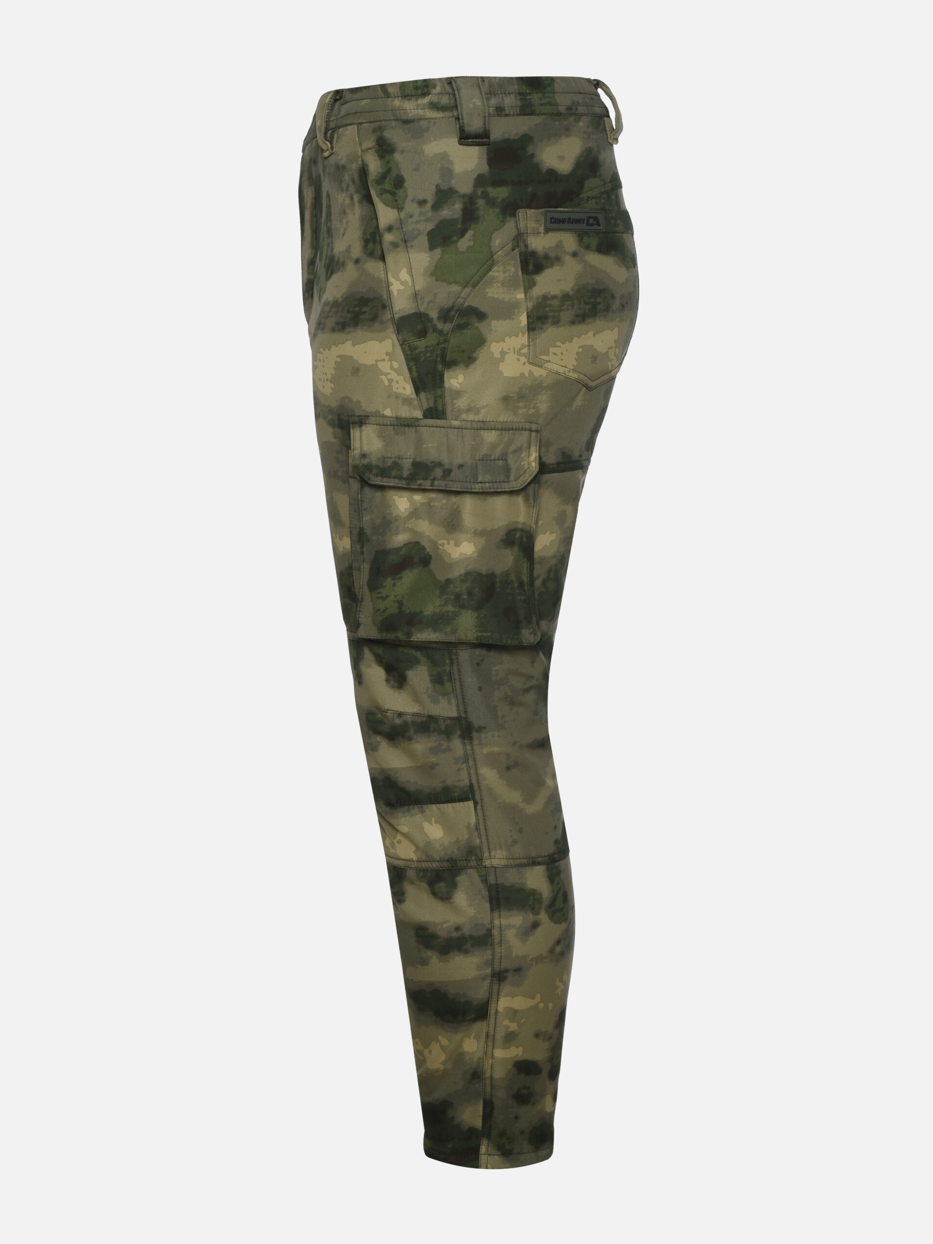 Брюки карго мужские тактические, выполнены из ткани дюспо (нейлоновая ткань, дублированная ветрозащитным и влагонепроницаемым флисом), свободного покроя прямого силуэта. Свободу активным движениям создает вставка в области паха и ягодиц. Изделие имеет множество функциональных карманов спереди, сзади и по бокам ног. Низ брюк оснащен застежками-молниями и кулиской с резинкой для плотного прилегания к различным видам обуви. Надежные, удобные и легко адаптирующиеся к любым, даже самым сложным жизненным обстоятельствам. Обладают отличными маскирующими свойствами как в пустынной, так и в лесистой местности, особенно в смешанных лесах и полях средней полосы и южных регионов.