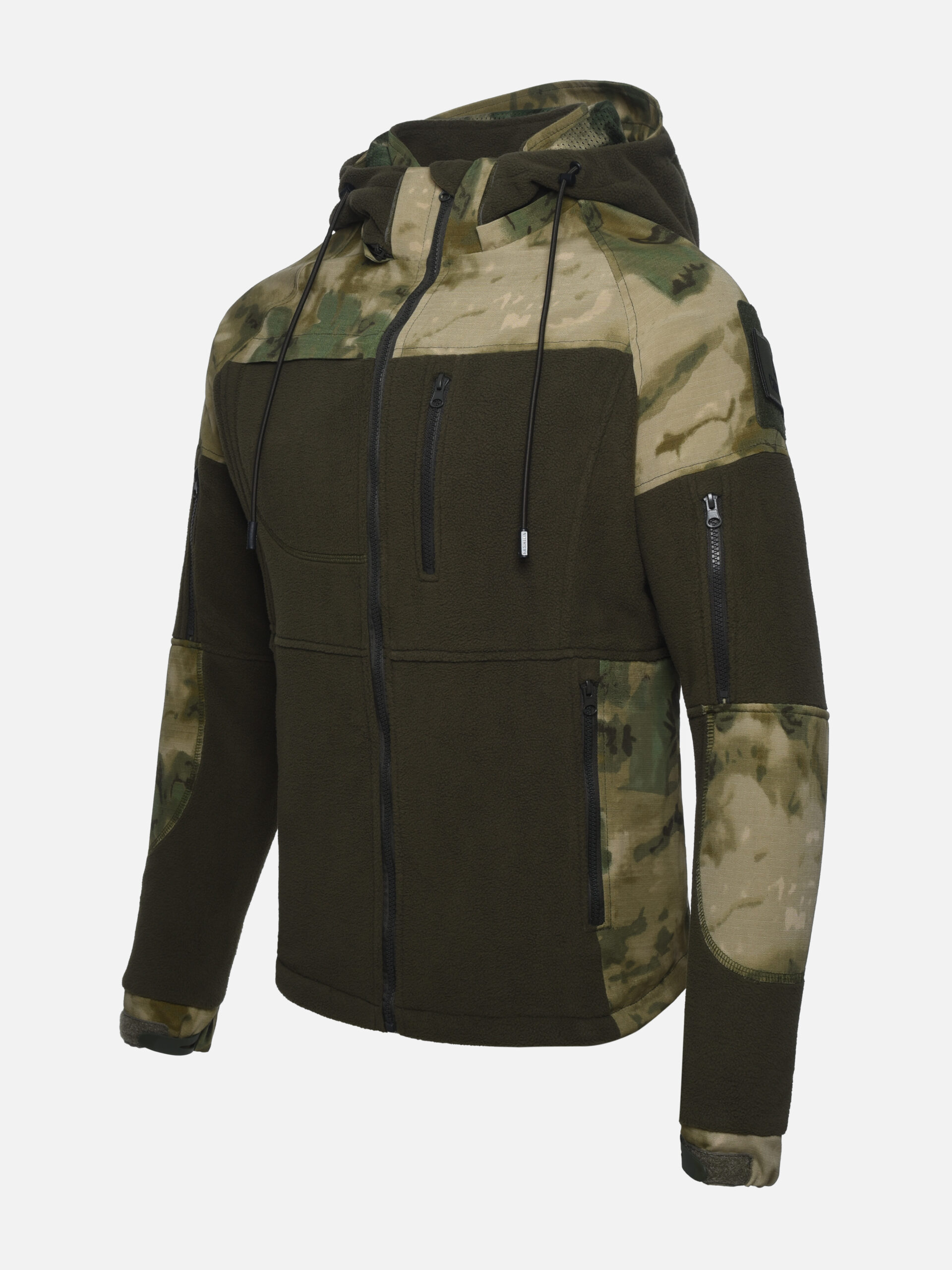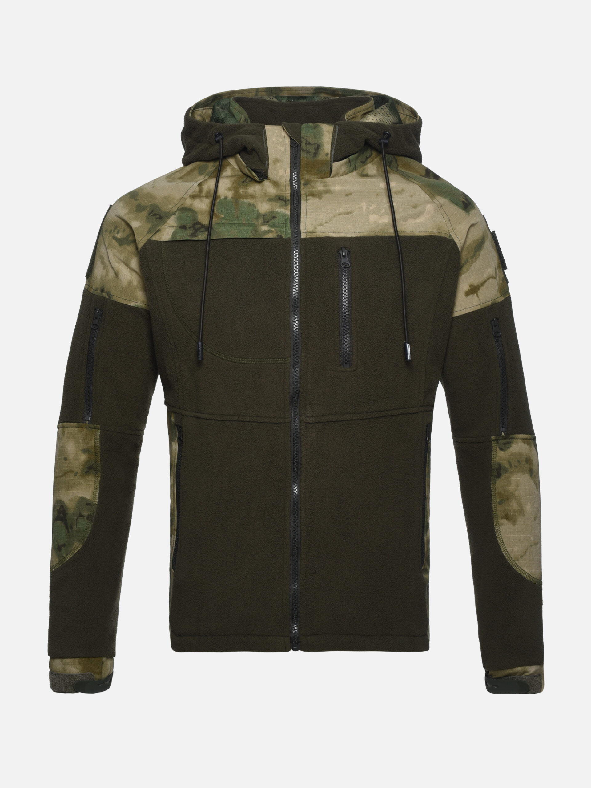 Мы предлагаем тактическую куртку из высококачественного флиса плотностью 300 г/м² с отделкой из рипстопа п/э свободного кроя прямого силуэта. Она идеально сочетает в себе функциональность военной амуниции и одежды для охоты или рыбалки. Ткань рипстоп п/э обладает влагоотталкивающими и ветрозащитными свойствами, что обеспечивает комфорт в сложных погодных условиях, а усиленная конструкция предлагает высокую износостойкость для длительного использования. Продуманные карманы позволяют удобно разместить необходимый скарб, обеспечивая легкость движений и доступность важных предметов. Вставки из рипстопа в области плеч , поясницы и боков обеспечивают повышенную износостойкость. Воротник-стойка имеет дополнительную утяжку в области шеи для плотного прилегания. Куртка оснащена съемным капюшоном. Низ рукавов обработан манжетами, которые имеют пластиковые хлястики и велькро для плотного прилегания к запястью.
