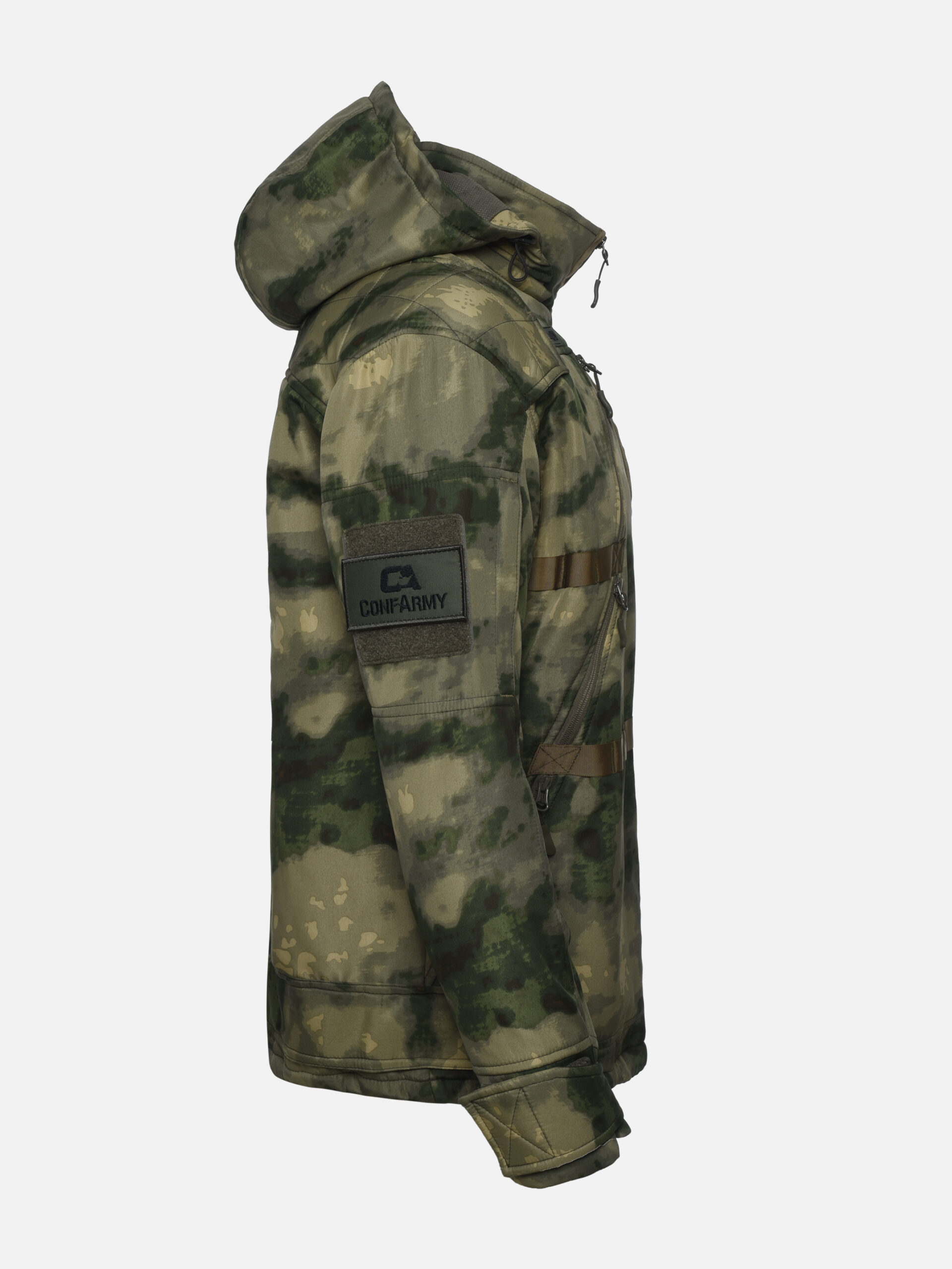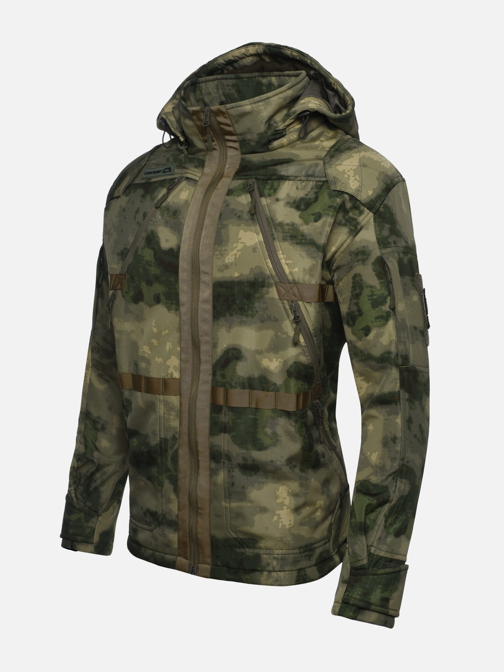 Мы предлагаем тактическую утепленную куртку из материала дюспо, отличающуюся свободным кроем и прямым силуэтом. Эта куртка объединяет в себе функциональность военной экипировки и удобство одежды для охоты и рыбалки. Материал дюспо (нейлоновая ткань, дублированная ветрозащитным и влагонепроницаемым флисом) обладает водоотталкивающими и ветрозащитными свойствами, что обеспечивает комфорт в сложных погодных условиях, а усиленная конструкция гарантирует долговечность. Продуманные карманы позволяют удобно разместить все необходимое, обеспечивая свободу движений и легкий доступ к важным предметам. Воротник-стойка с утяжкой плотно прилегает к шее, а съемный капюшон добавляет универсальности. Рукава имеют вертикальные карманы на молнии. Манжеты на рукавах оснащены широкими хлястиками и велькро для плотного прилегания к запястью. Низ куртки регулируется кулиской с резинкой и стопорами-ограничителями для оптимального прилегания в области бедер. Область плеча и спинка усилены неопреном (поролоном) для удобного ношения туристической или военной экипировки. Эта куртка идеально подходит для военных задач, охоты, рыбалки или активного отдыха. Наша тактическая утепленная демисезонная куртка разработана с учетом высоких стандартов военных специалистов и оснащена системой Молле.