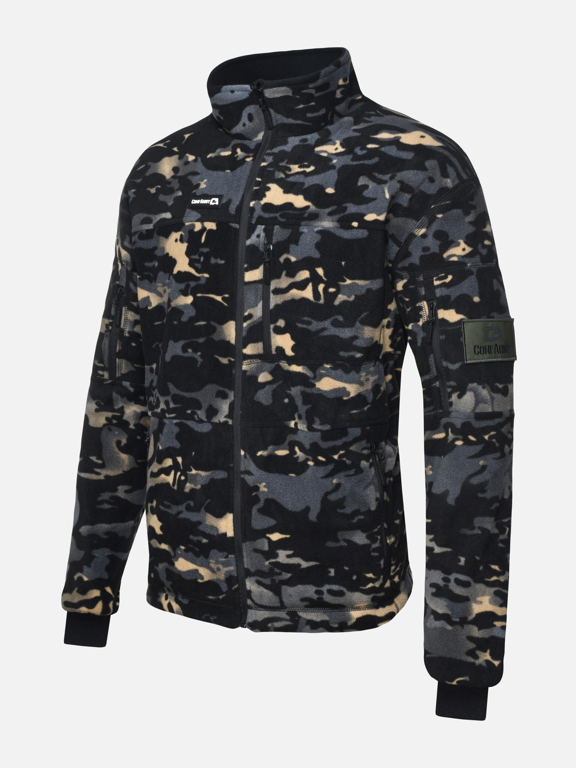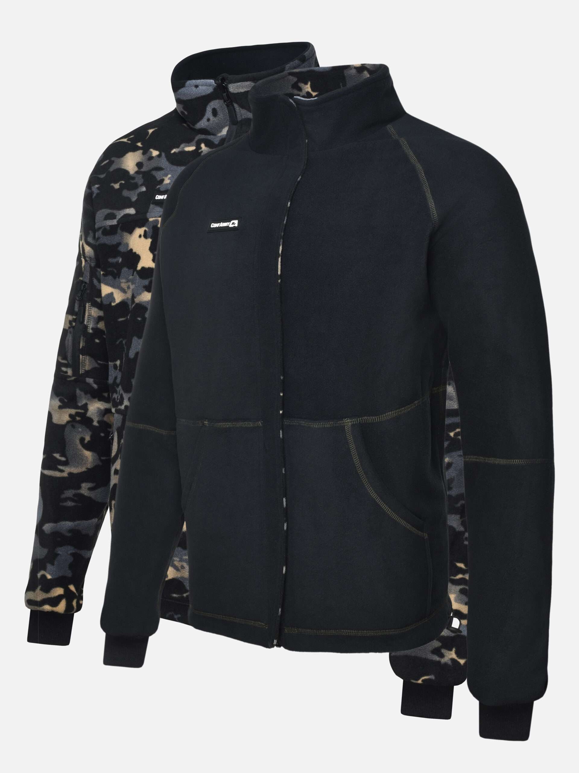 Мы предлагаем удобную мужскую двухстороннюю тактическую флисовую толстовку на молнии, которая обеспечивает тепло и комфорт в холодные дни. Она выполнена в 2 слоя из плотного флиса 270 г/м², который согреет вас в непогоду и в период холодов. Куртка имеет длинные рукава и высокий воротник-стойку прямой формы, который защищает шею от ветра. Модель представлена в цвете черный мультикам — с одной стороны и графит — с другой.